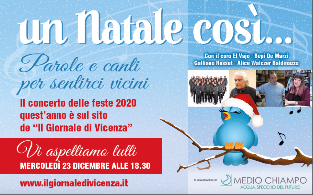 Sul sul sito www.ilgiornaledivicenza.it, a partire da oggi 23 dicembre alle ore 18.30 e per tutte le festività natalizie, si potrà assistere al concerto “Un Natale così…”.
