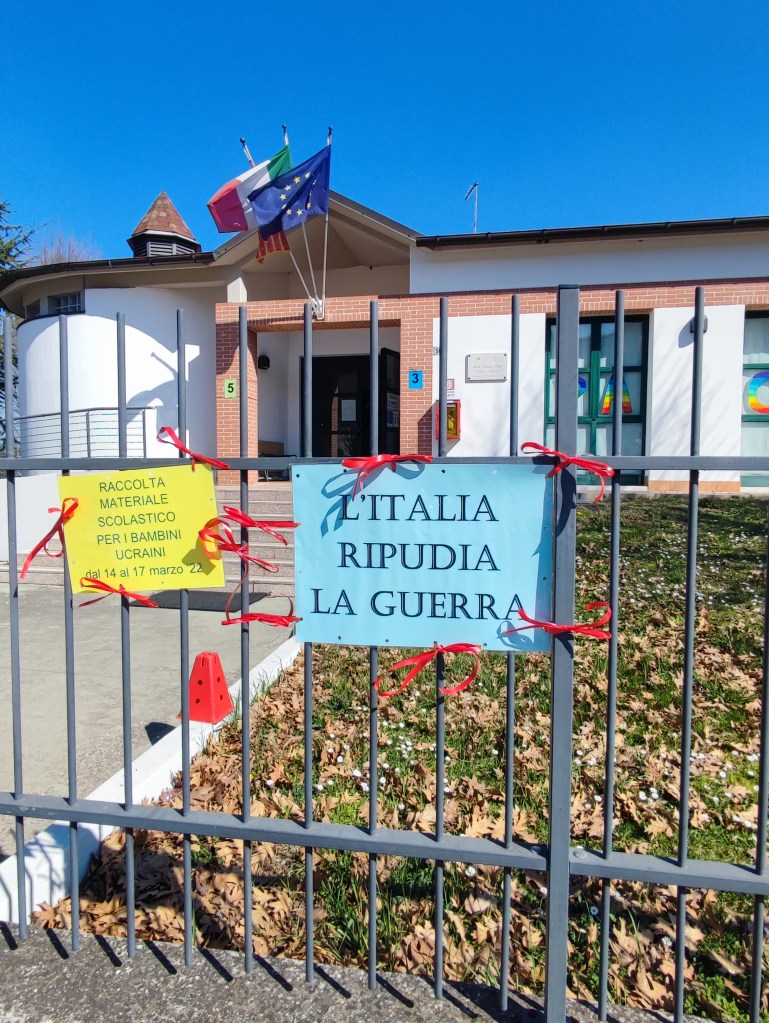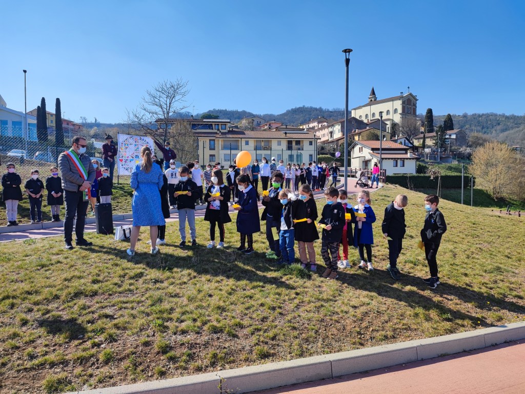 Una marcia per la pace dalla scuola al nuovo parco comunale, poesie, canti e un colorato cartellone per dire no alla guerra in Ucraina e per ribadire i valori della fraternità tra i popoli.