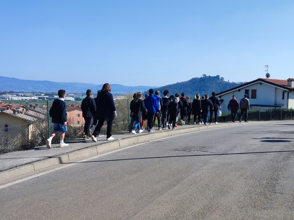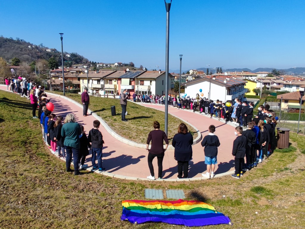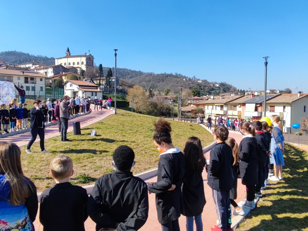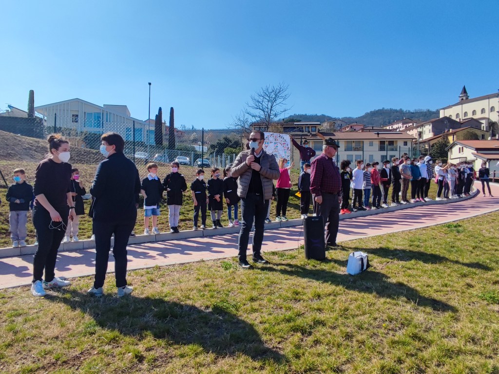 Oggi pomeriggio gli alunni della scuola primaria e dell’ultimo anno della scuola dell’infanzia sono stati i protagonisti di una colorata manifestazione, che ha visto anche la partecipazione del sindaco Luca Albiero, della consigliera comunale Sofia Elena Russo (incaricata a seguire le tematiche scolastiche) e di alcuni rappresentanti del gruppo degli Alpini.