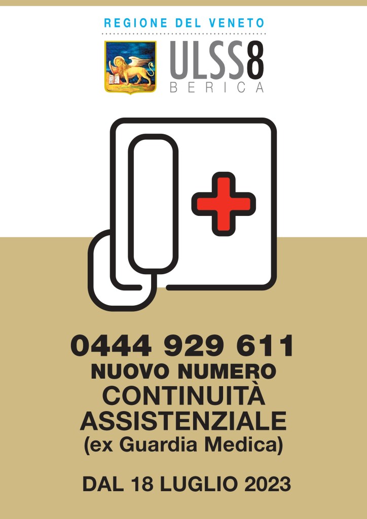 L’Ulss 8 Berica comunica che dal 18 luglio 2023 sarà attivo il nuovo numero telefonico per accedere al Servizio di Continuità Assistenziale (ex Guardia Medica), unico per entrambi i Distretti Est e Ovest.