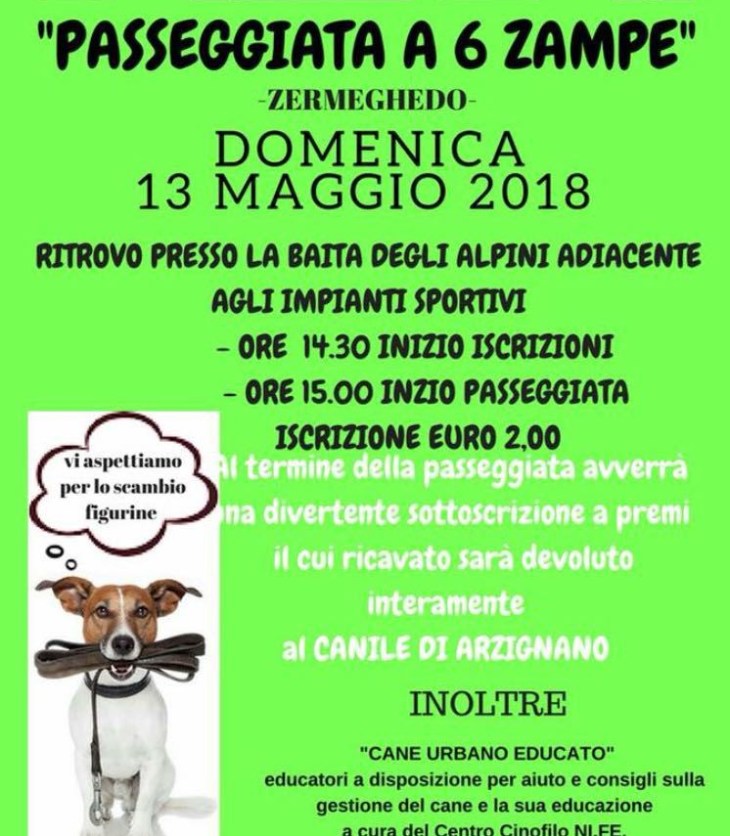 Domenica 13 maggio a Zermeghedo è in programma la “Passeggiata a 6 zampe”, manifestazione nata…
